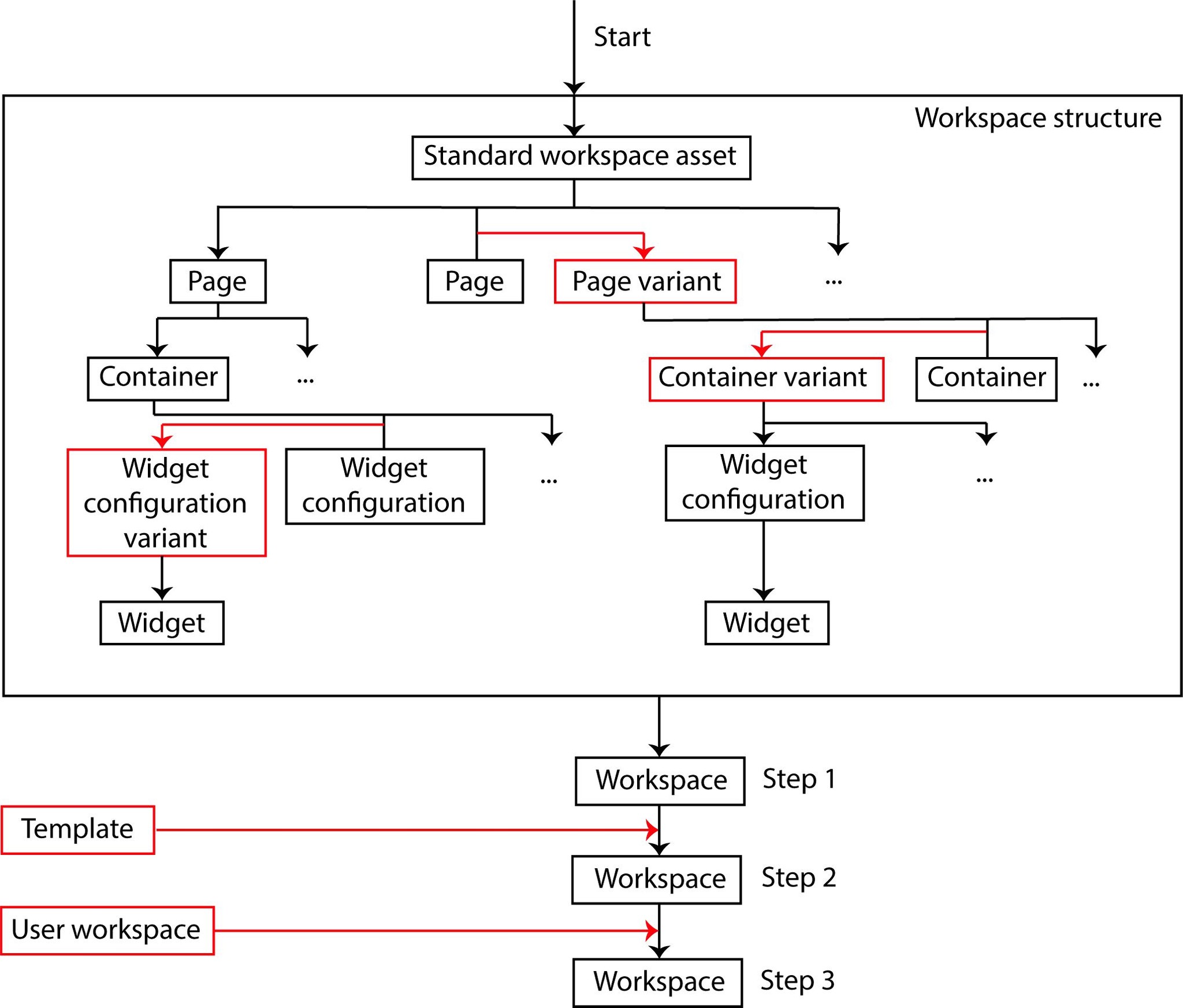 Generation of a workspace using a standard workspace structure, resource replace variants, workspace templates and user workspaces.