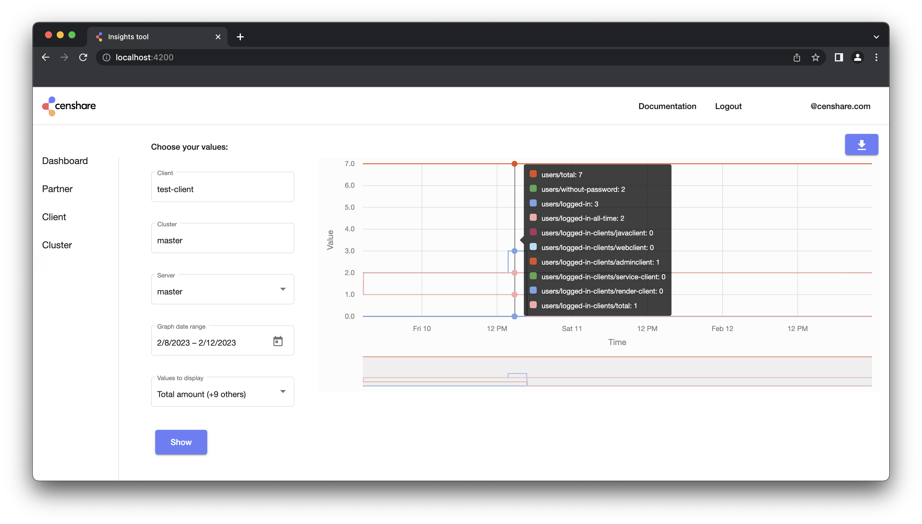 Access to metrics is restricted based on the group membership of the user. Groups represent partners.
