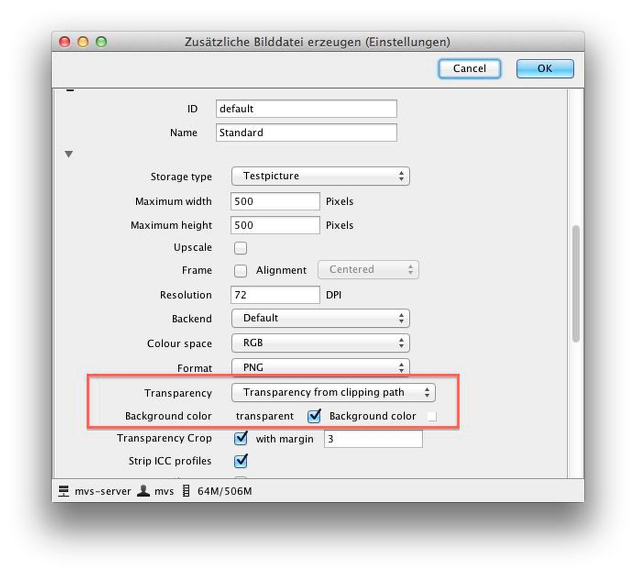 With this setting, the additional image file is cropped at the clipping path. In addition, a configurable border is added. If a PNG file is created, it can also have transparency.