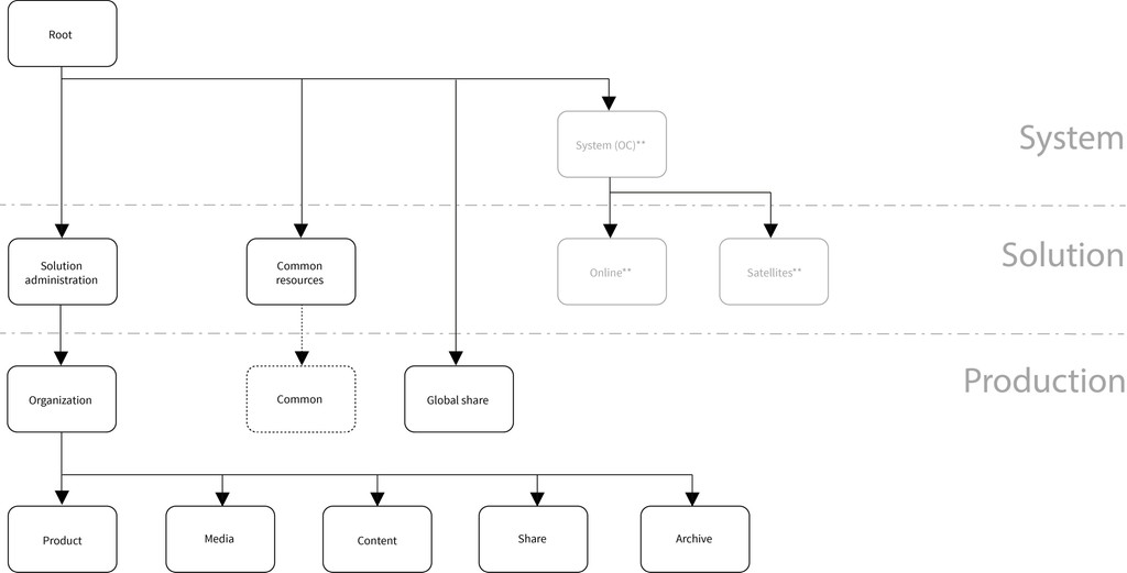 In the Common resources domain of the administrative layer, you can store module assets that are required to customize and configure the dedicated solutions. Assets that are stored in this domain can be accessed across all organizational units. Users (except Solution administrators) do not have write permissions in this domain.