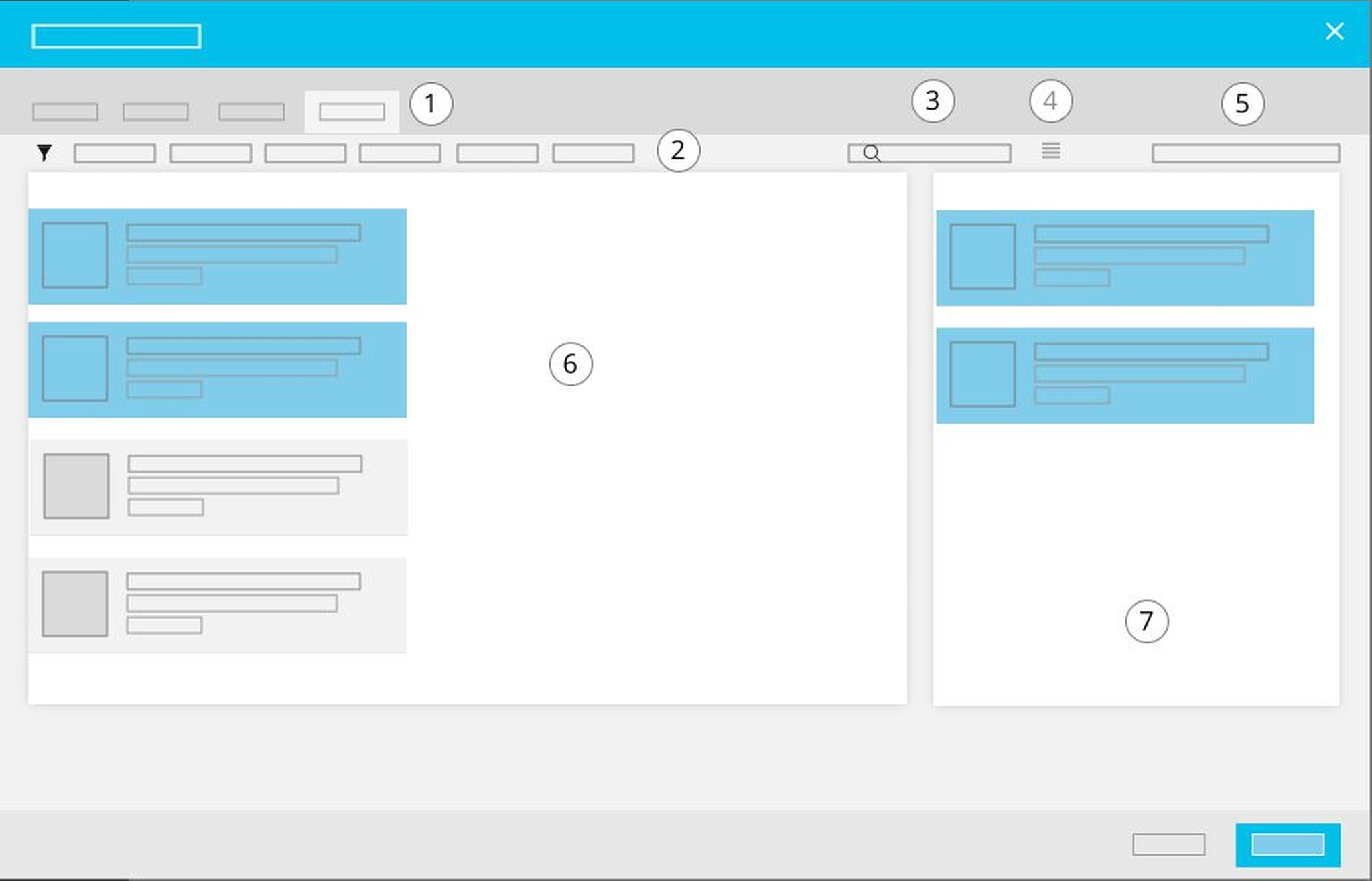 Filter lists help you find assets that you need frequently in your daily work. Depending on the context and your configuration, the asset chooser dialog offers additional or different asset lists.