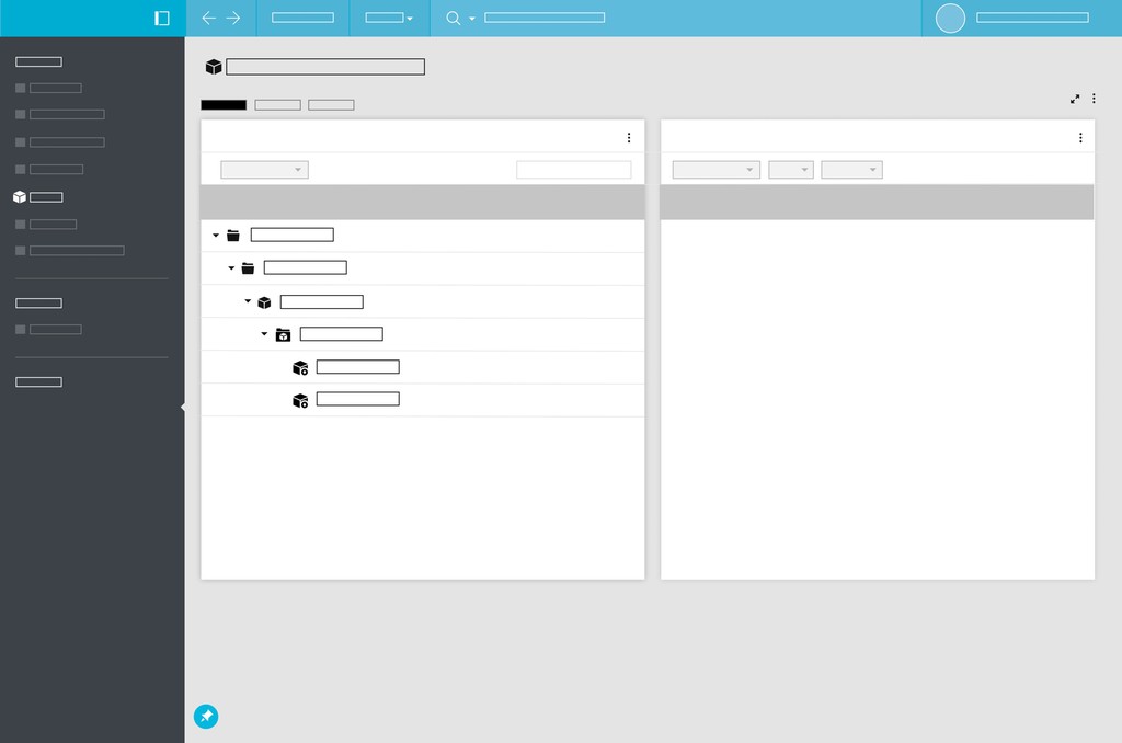 The left widget on the Products page shows products in different contexts and structures. At start, only the root nodes display. To expand a node, click the arrow icon.