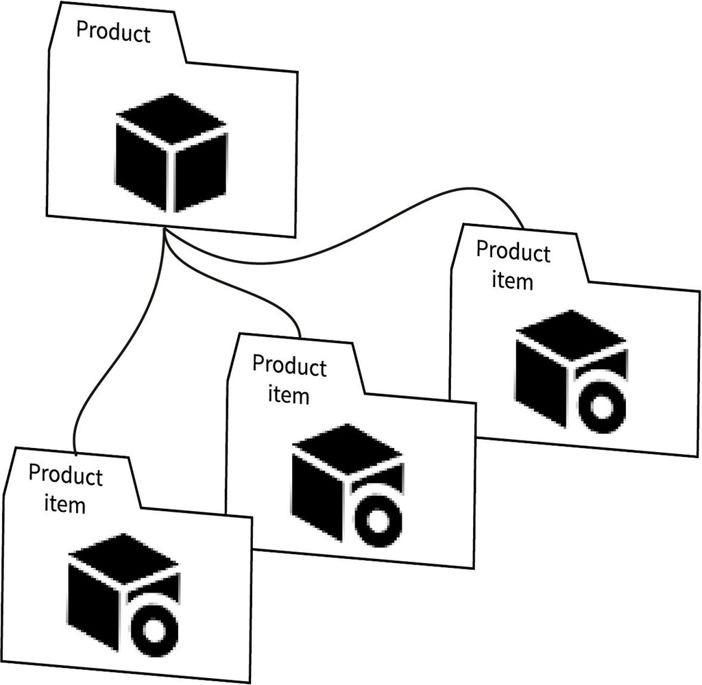 Products are the parent asset of product items. Product items represent a sellable item of the product and differ in color or size, etc. The Product item relation inherits all product features to the product items.