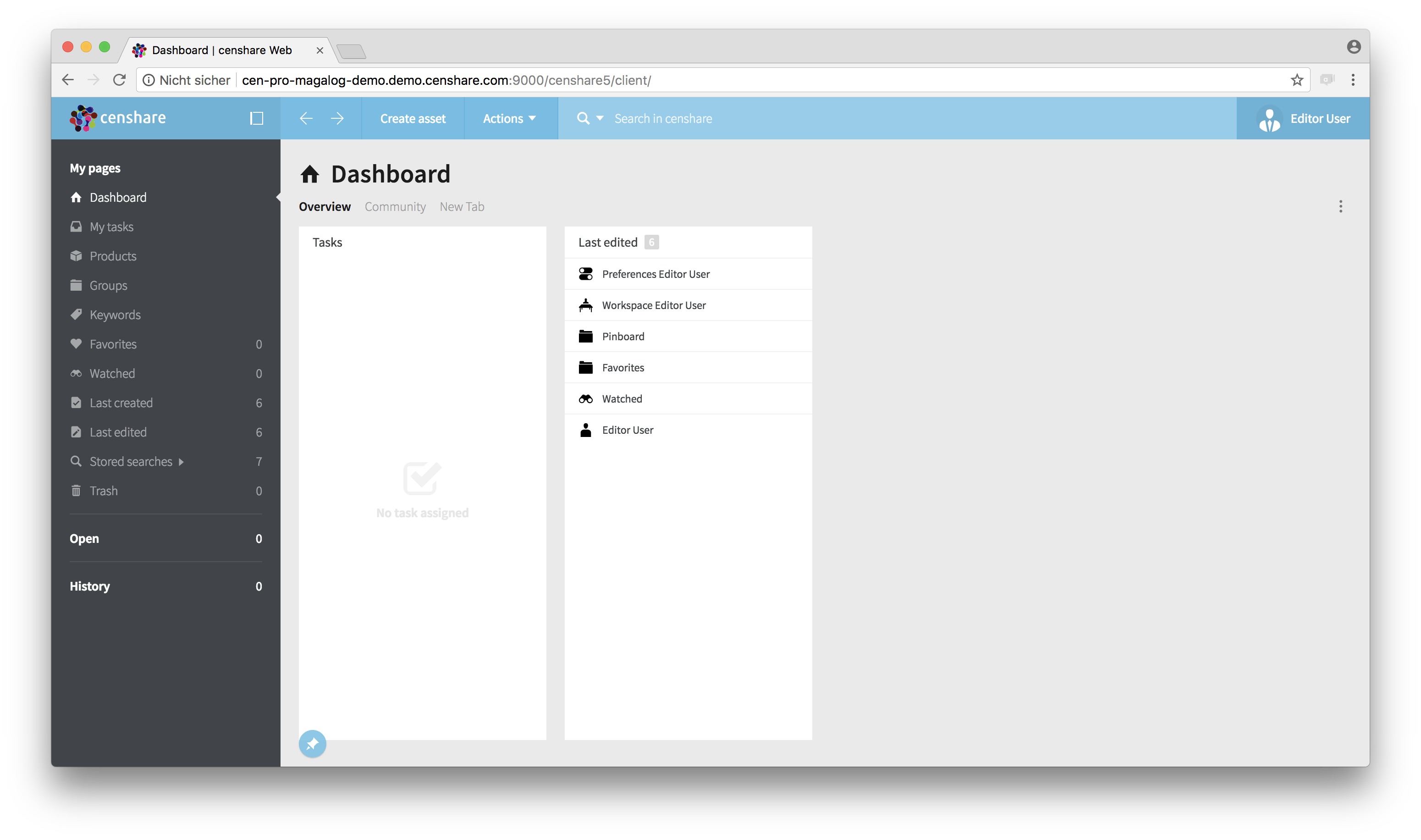 Resume: You have now renamed the new workspace asset and assigned it to the "Editor" role.