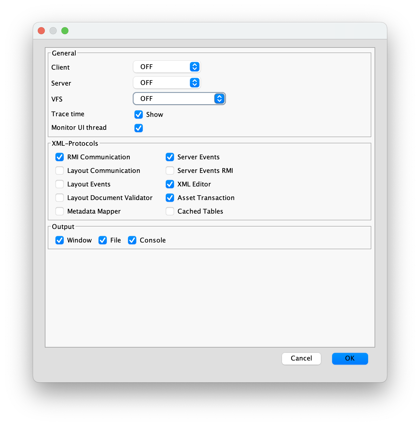 If you select File as an output option, the logs will be written to ~/Library/Preferences/censhare/v4/javaclient-0.x.log