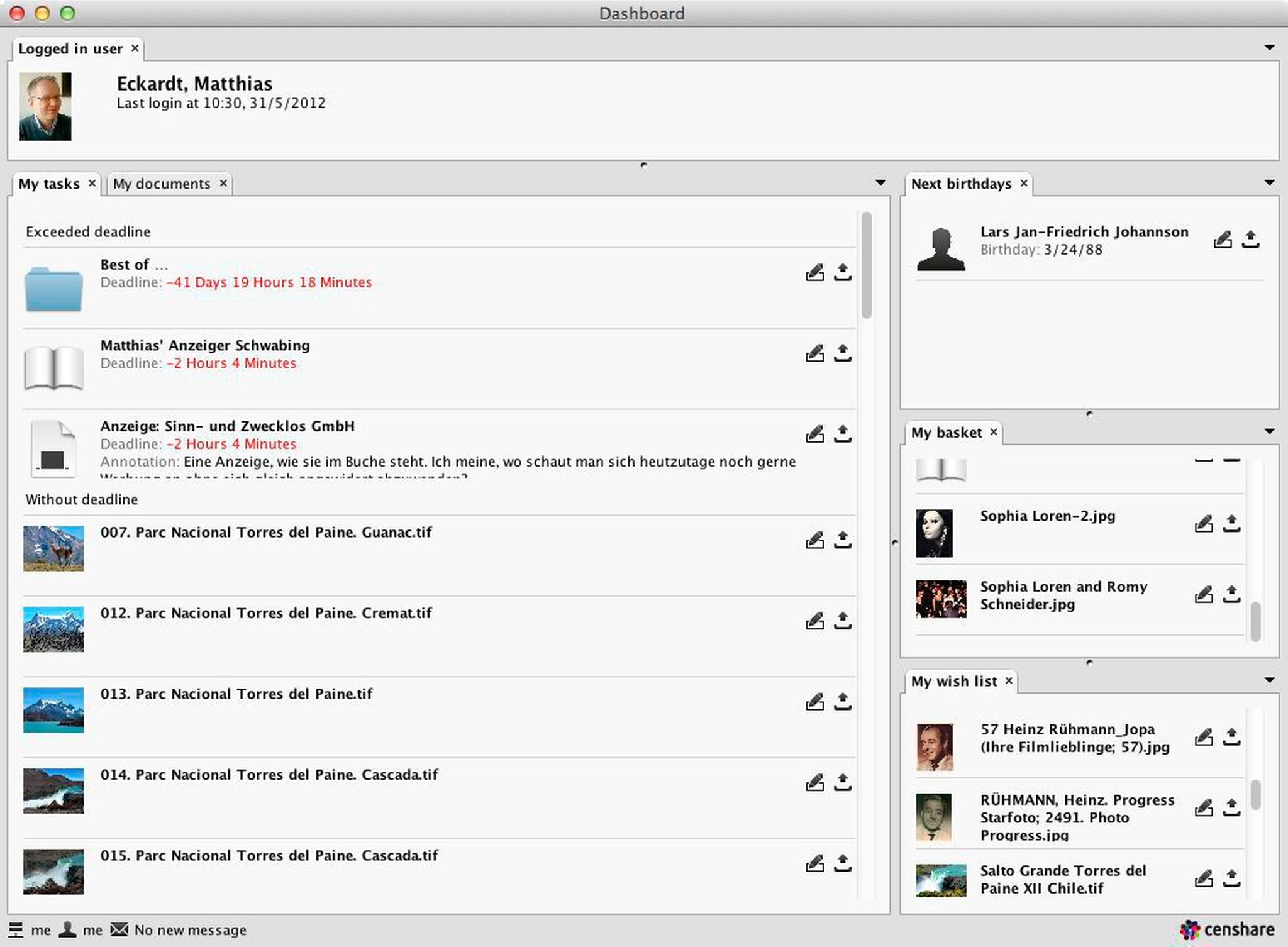 Example of an UIAction-Widget: Dashboard, which can be accessed via the "Window"-menu.
