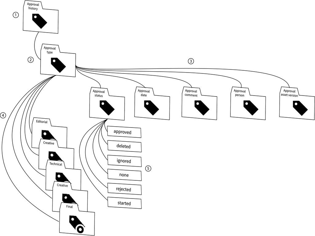• Approval asset version: Each approval action creates a new asset version. Values are generated automatically.