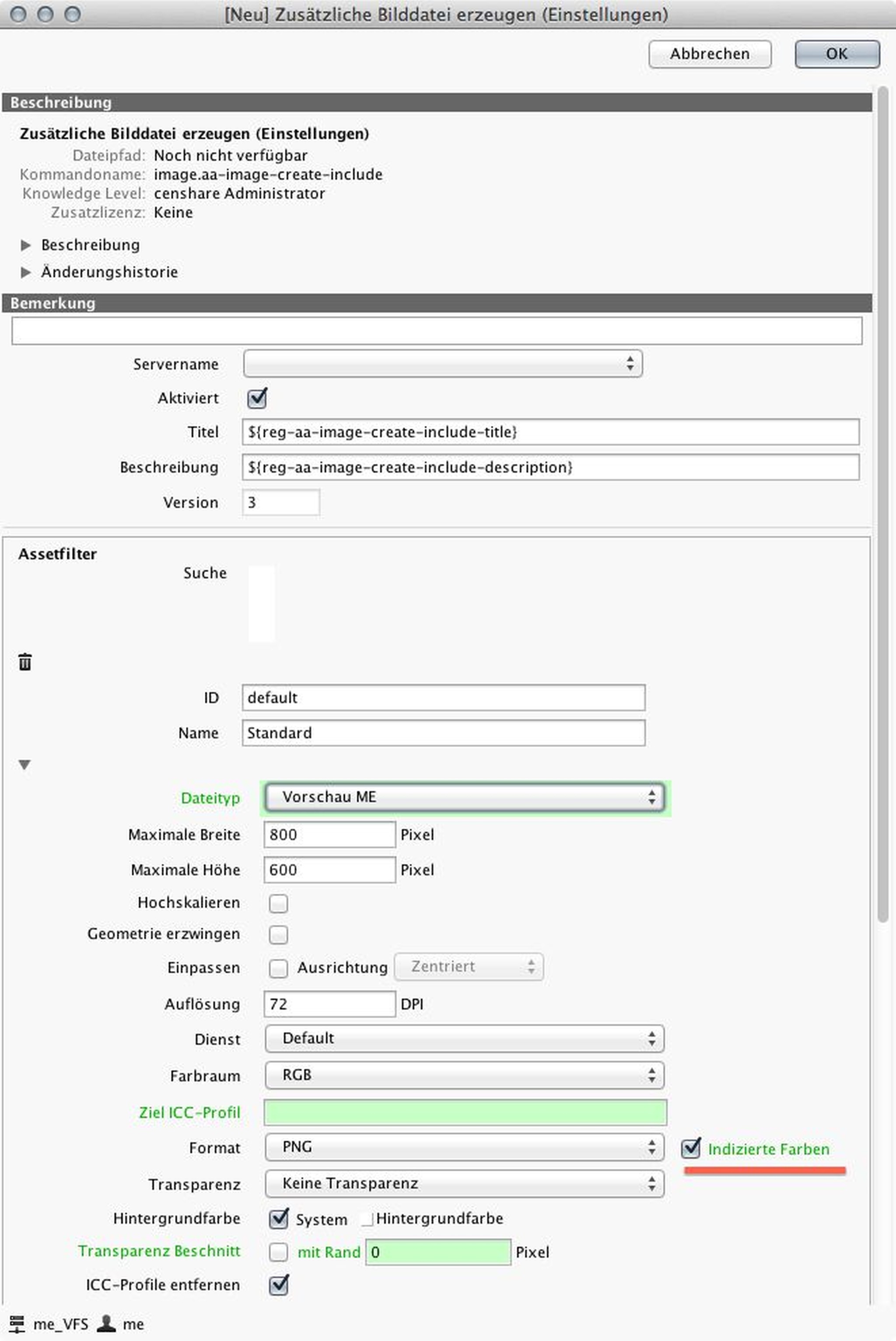 • Modules/Image/Create additional image, which also applies to the automatic variant of the action.