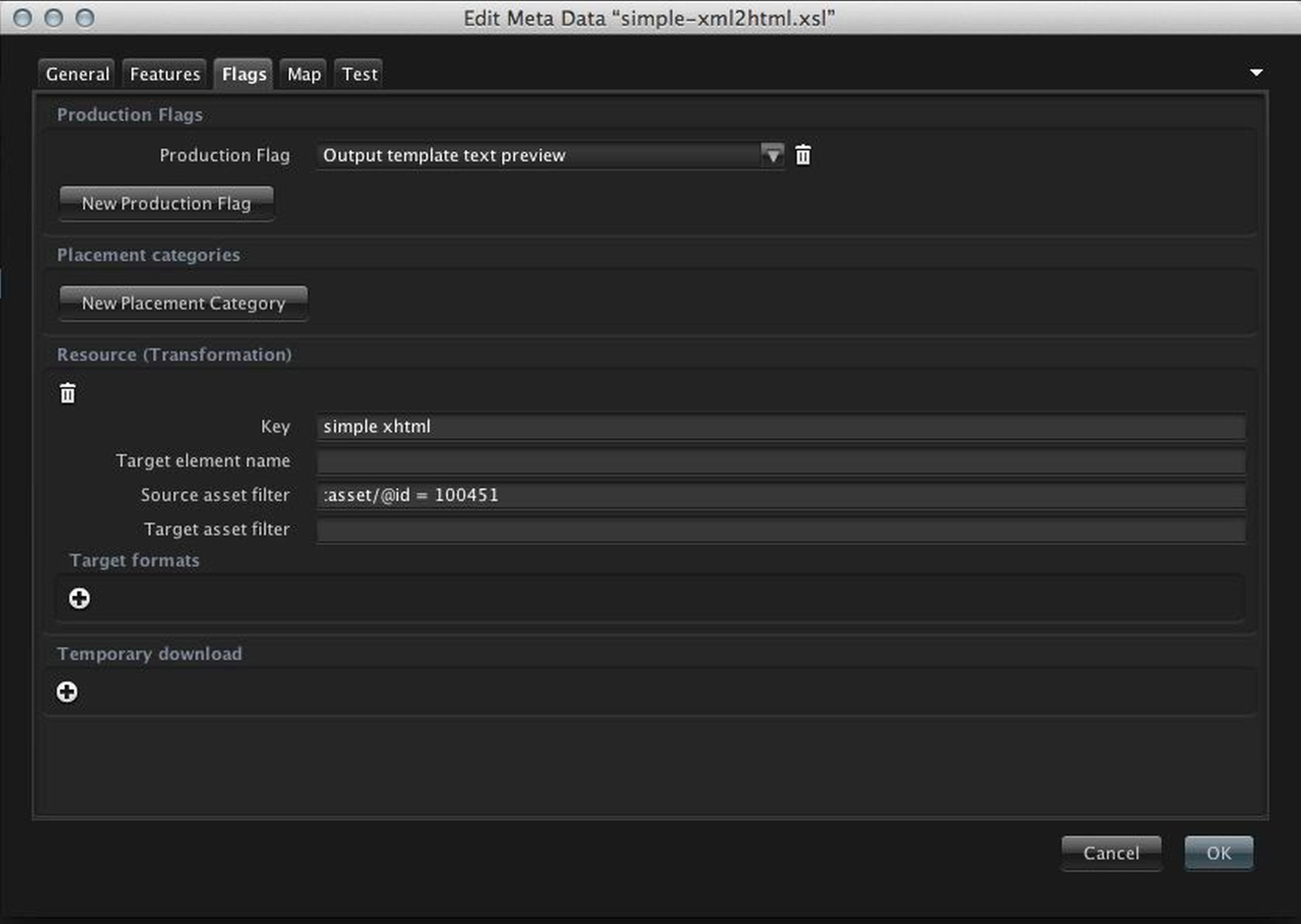 To use different transformations for various XML texts, the field 'Source Asset filter' has to be filled in accordingly, see picture below.