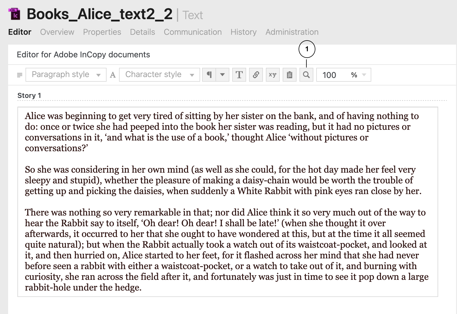 In the Editor for Adobe InCopy Documents, you can conveniently search and replace text in a story.