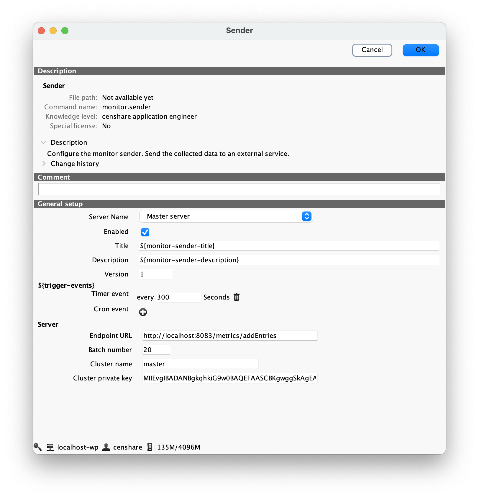 - Configuration → Modules → Monitor → Sender