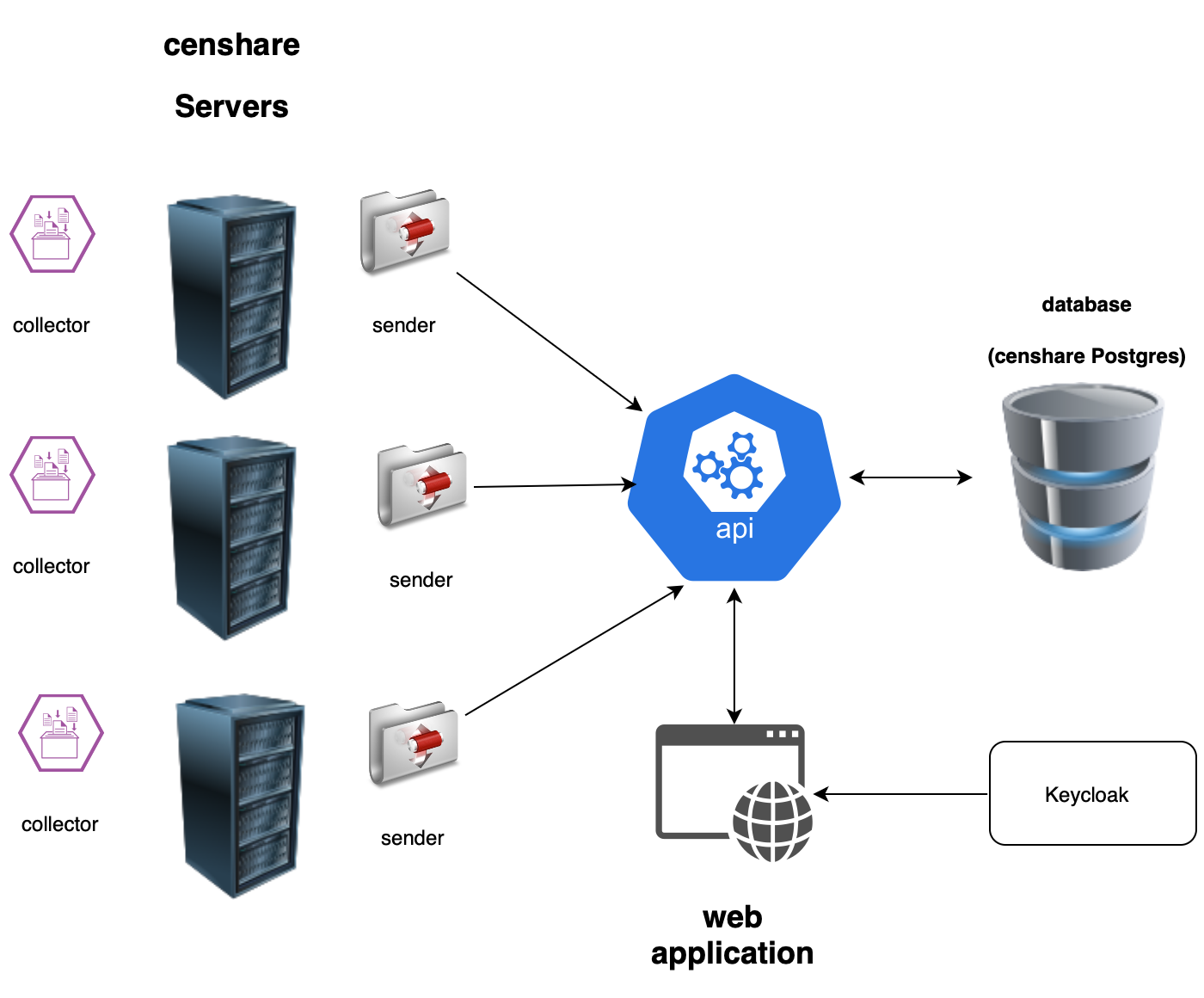| censhare Server sender | Continuously sends collected data to a central database using the API microservice |
