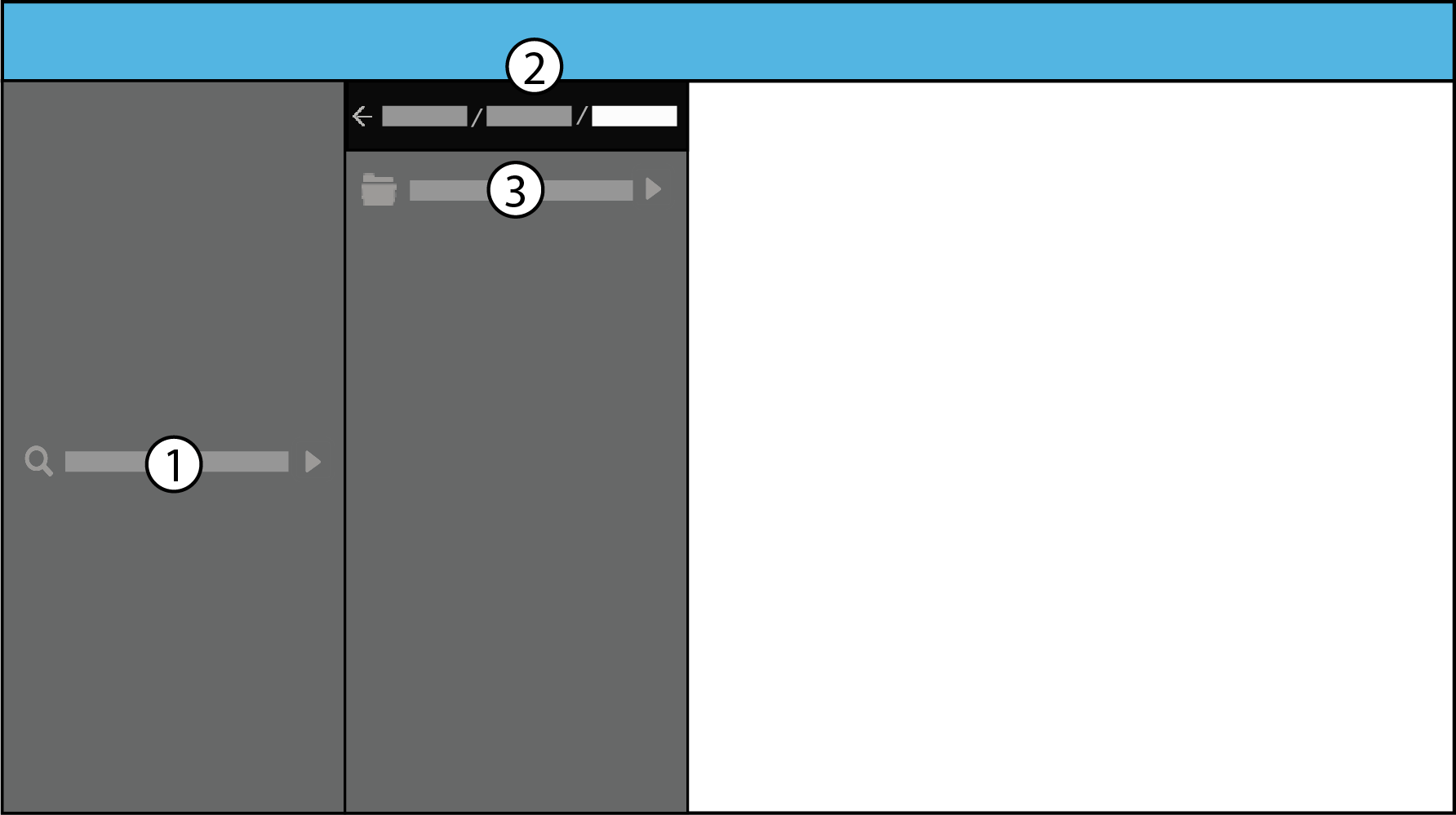 - To go back one step, click the left arrow in the breadcrumbs at the top.